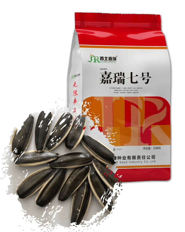 嘉瑞7号属于食用型向日葵杂交种,生育期105天左右,属中熟品种,株高180厘米左右,茎粗3.4厘米,叶片数34~36片左右,花盘直径23~27厘米,花盘向下倾斜,单盘粒重142.5克,籽粒长锥形,粒长2.4厘米黑底白边,粒宽0.92厘米,该品种耐列当、中抗菌核病、黑斑病、褐斑病。