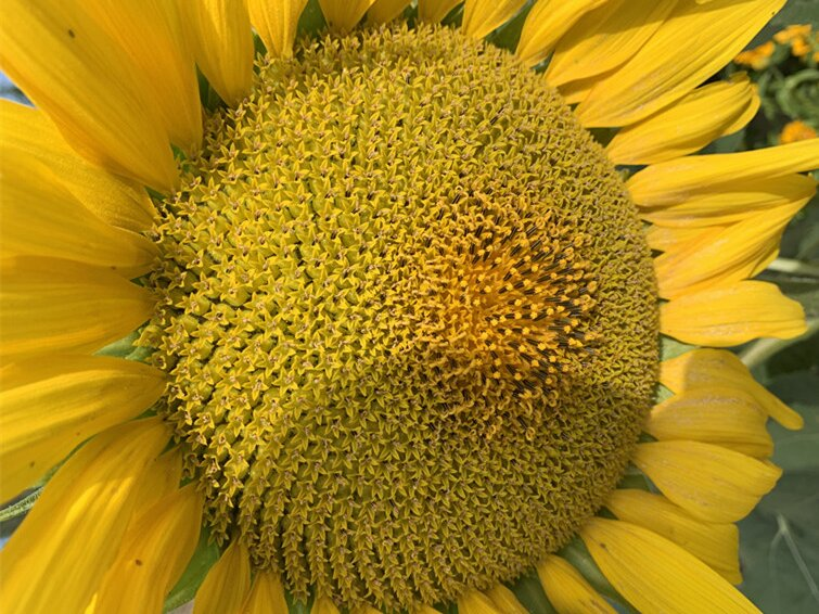6、收获期:当花盘背部颜色变黄,及时收获,晾晒过程中防雨,避免脱皮。